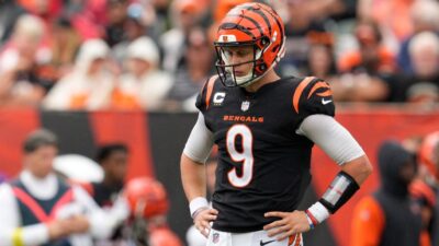 Quarterback Lamar Jackson stumbled toward the sideline during Thursday Night Football and fell awkwardly while flipping the ball out.