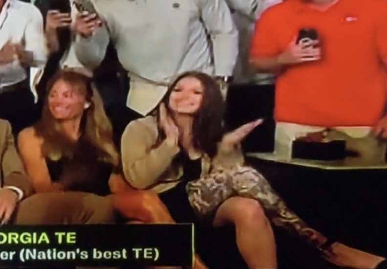 When ESPN cameras went live to Brock Bowers home, you could see him waiting to hear his name while his family waited near him. His sister to his left would steal the show as her skirt showed off her right leg tattoo sleeve.