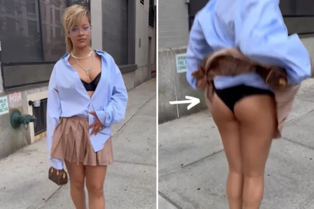 As she debuted her new style, Rihana startled admirers by purposefully exposing her underwear on a crowded street in New York City.