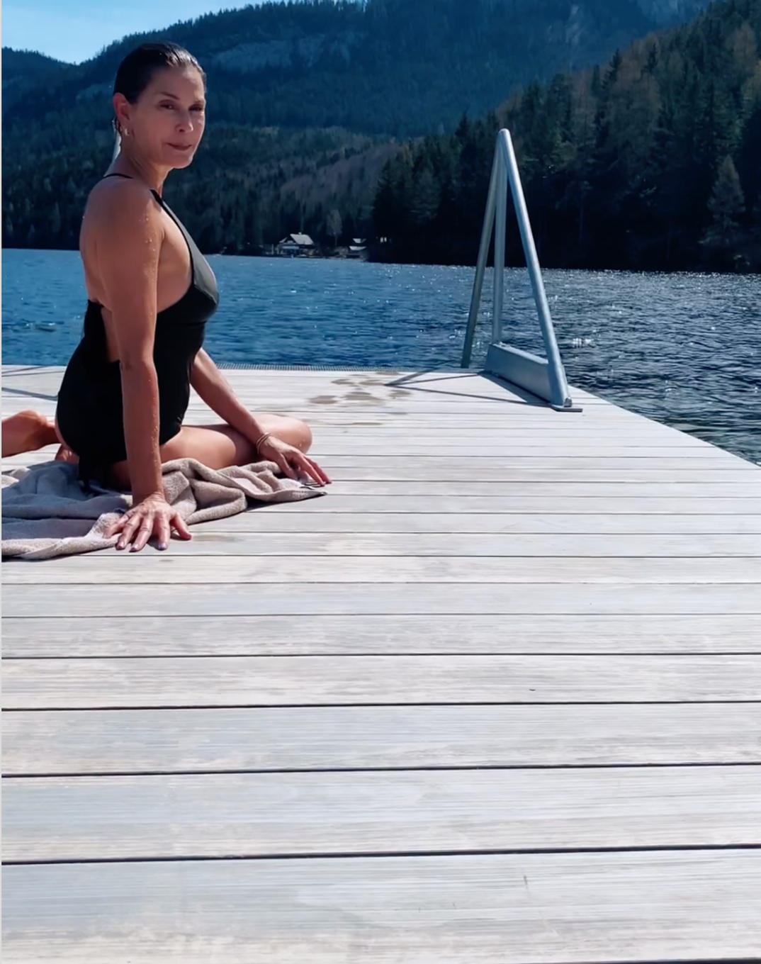 Teri, 54, seemed happy as she enjoyed some beach time in a photo that she shared to her Instagram Stories on Friday. She displayed a lot of cleavage in a plunging swimsuit, showcasing her contours.