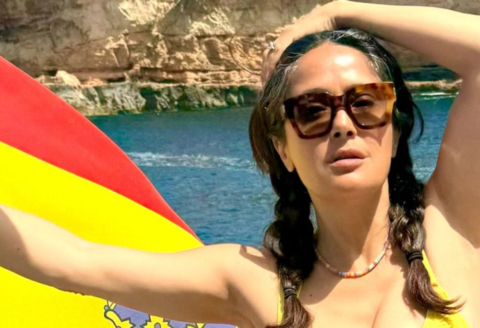 Flip to the next page for Salma Hayek’s latest bikini thirst trap photos…