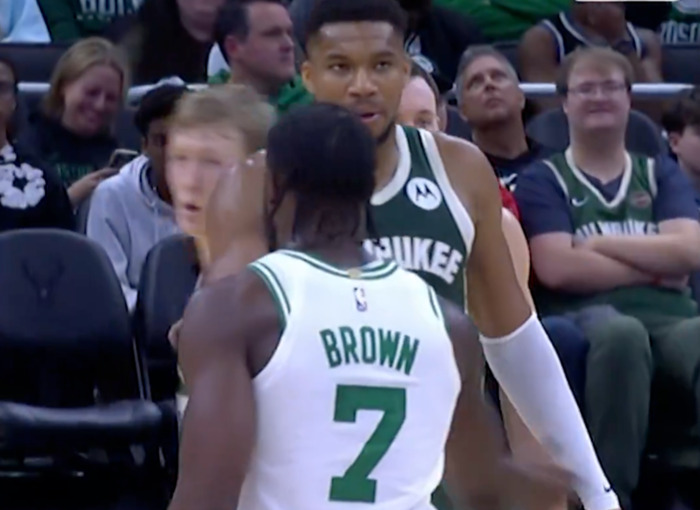 Giannis was the focal point of a few contentious plays during the game, which was a physical contest between the two sides. He tripped up Jayson Tatum as he got in his landing spot on a three-point shot and then elbowed Brown high on a drive to the rim.