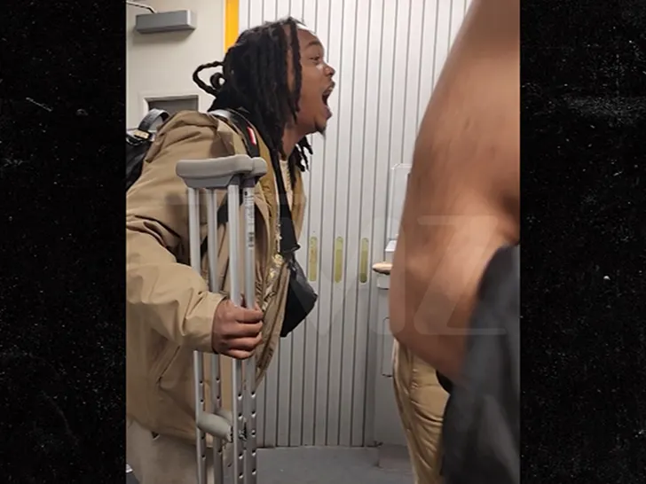 Footage from Monday’s heated event in Atlanta, which shows a woman from the airport’s wheelchair service arguing with a tourist using crutches and a cast on his foot… continuously calling her a “bitch.”