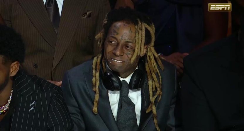 Before performing a lyric from Wayne’s 2011 smash song “6 Foot 7 Foot,” Hunter told Wayne during his victory speech that he discovered his music because his fiancée showed him, indicating it was quite recent. Hunter fought back tears during his statement, but a humorous moment added some lightness.