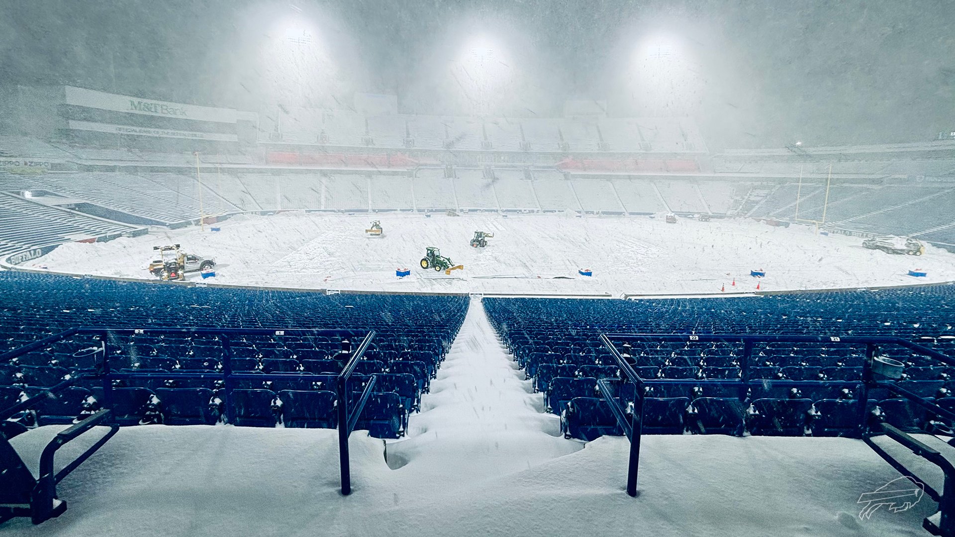 Snowplows encircled Highmark Stadium on Friday, ten months after the team’s playoff game against the Pittsburgh Steelers was postponed due to blizzard conditions. The team also started looking for volunteers to assist with snow removal.