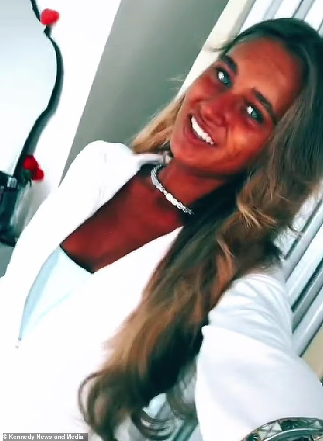 Despite ‘not knowing much about sunbeds’ at first, she spent up to half an hour on the beds under the UV lights for over a year, often coated in baby oil to enhance the results.
