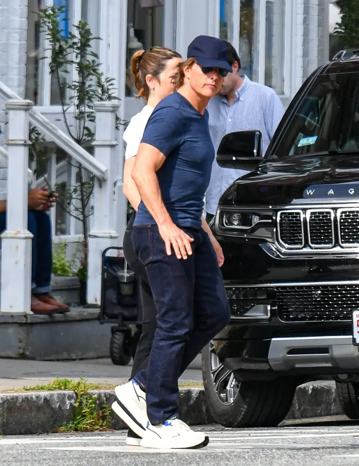 Goal: Unstoppable star Ana, a 37-year-old Bond girl, likewise wore a basic white T-shirt and trousers, while Tom, 63, was dressed down in a navy T-shirt, jeans, and a cap.