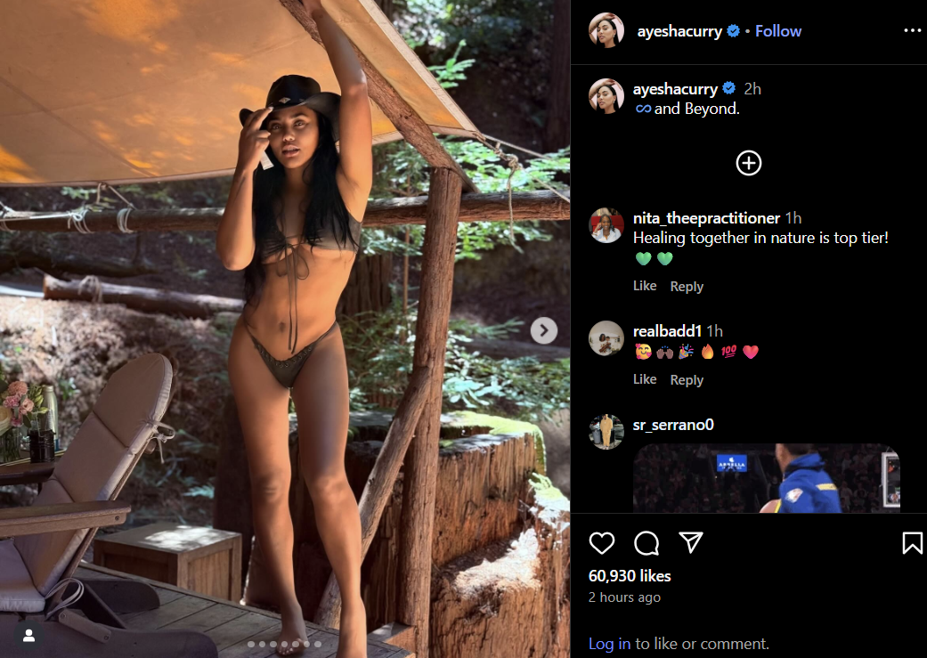 Ayesha Curry shared a cute post and a naughty photo of Stephen Curry in honor of their 14th wedding anniversary. The Golden State Warriors player roared in approval as she showed off her stunning bikini with a cowboy twist during their date walk.