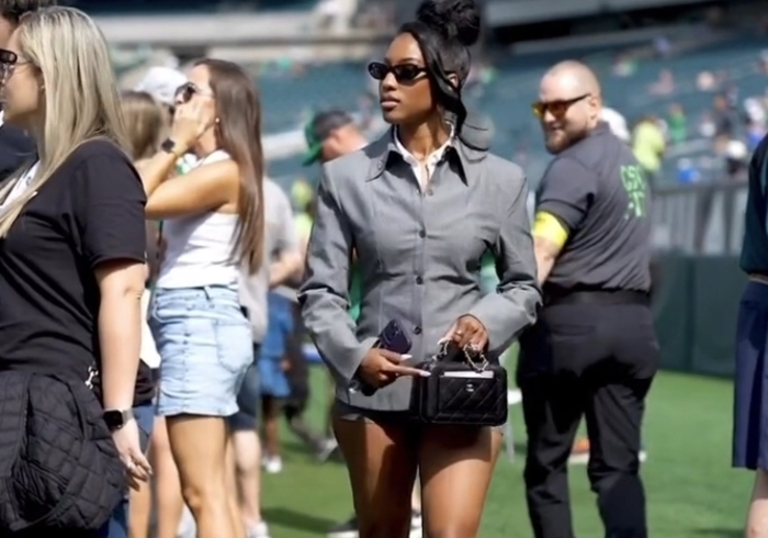 DeVonta Smith caught a security guard checking out his fiancee, Mya Danielle, during the Eagles game. And let’s just say, he wasn’t too happy about it. Smith went up to the comments section of the video and gave him a piece of his mind – letting him know his girl is off the limit!