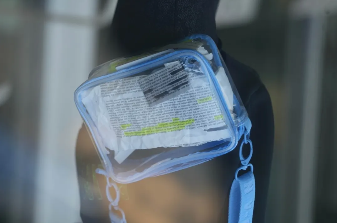 Keen observers also noted a legal document peeking out from her transparent purse—the see-through bag is a requirement for attending UNC home games—and the document features highlighted sections with phrases like “false light” and “fraud.”