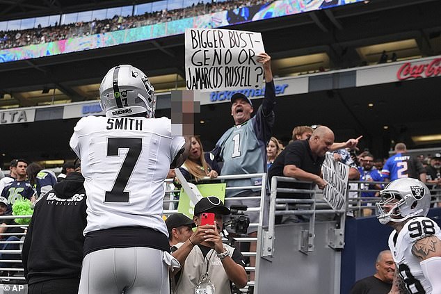 Smith has thrown 13 touchdowns and a league-high 13 interceptions this season. His first year in Las Vegas hasn’t gone as planned, and the fan base wasn’t pleased with his actions following the defeat.