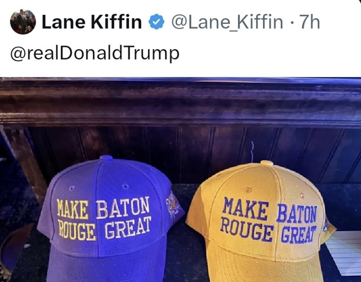 Kiffin posted the image on Jan. 23 showing LSU-colored (purple and gold) hats with the text “Make Baton Rouge Great” printed on them—a local twist on Trump’s famous MAGA phrase—and directly tagged Trump’s X account (@realDonaldTrump). The post drew nearly 9,000 likes but drew criticism in the comments for injecting politics into college football and potentially harming recruiting efforts among diverse families.