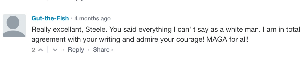 You want to know why I say Sage’s is dangerous to the black community? She was featured on Breitbart (the white nationalist site that helps promote Donald Trump) and here are just a few comments under the story.