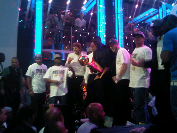 My insiders are telling me that Mark Cuban is dropping major cash (could top 500k) and that the Mavs have taken over an entire section of the club. Sporadic chants of “Lebron Sucks” have also been heard.