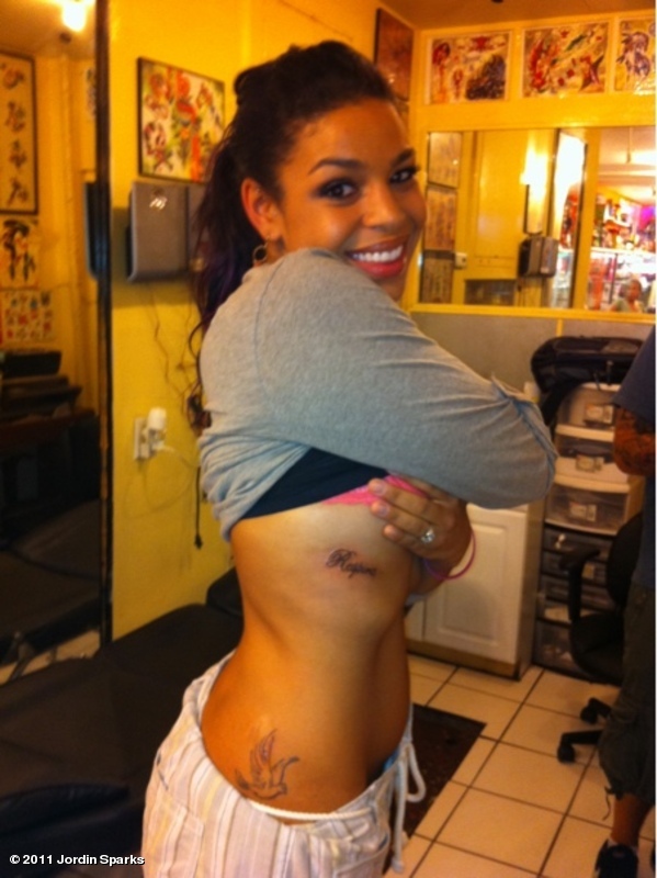 Her latest tattoo says “Respira” means Breathe Spanish, women who talk in Spanish are sexy by the way.