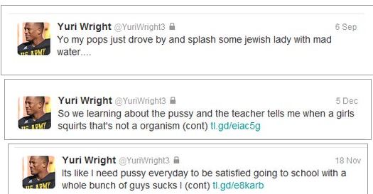 The interesting thing is Yuri Wright’s Twitter account was private, but as he found out nothing is private on Twitter.