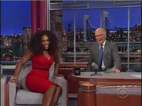 Serena Williams stop by the Late Show With David Letterman in a very form fitting dress, that I am sure the fellas would enjoy.