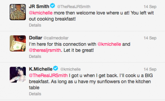Reality star wants athlete, tweets little messages, ends up at the club poppin bottles and then probably at the Motel 6.