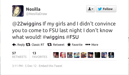 Florida State pulled out all the stops to land Wiggins, but even if they don’t, the coed’s enjoyed the attention.