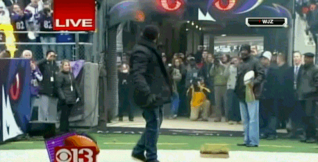 This is my GIF to the Baltimore Ravens and the Ray Lewis fans of the world. Now if you are not a fan of Lewis and the Ravens, and trust me there are many who are not, this is still a GIF for you as well. Look at the cup half full this is probably the last time you will see Lewis perform his squirrel dance.