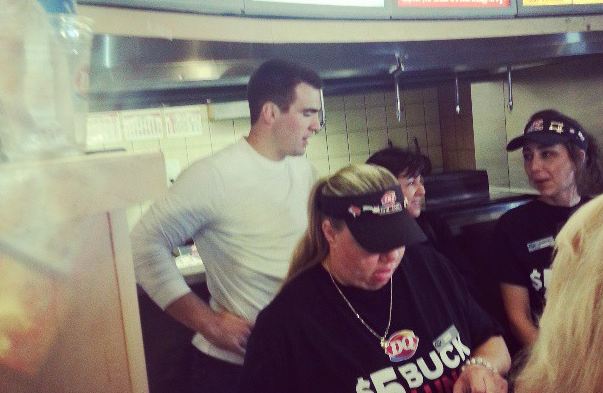 Joe Flacco continues to amaze me. Over the past year, we’ve been able to get a glimpse of the Super Bowl MVP QB and how he functions off the field. In addition to eating chicken nuggets at McDonalds after landing a major contact and riding the free airport shuttle bus with everyday regular people, Flacco is now serving ice cream at the drive thru window at Dairy Queens.