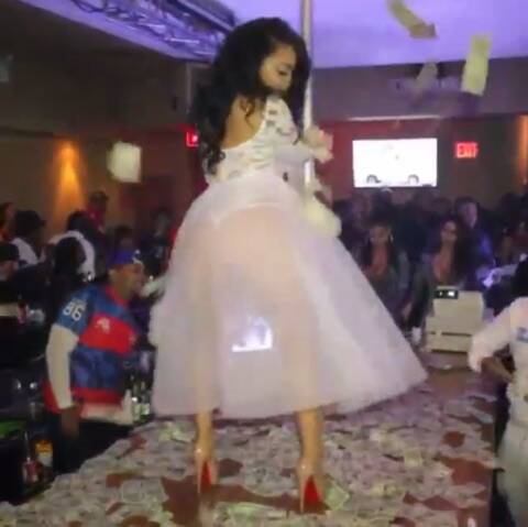 When you think of a bride dancing at a wedding, you think of a beautiful dance with her father and the first dance with her groom. I’m sure twerking on a stage while dollar bills were thrown over you didn’t come to mind.