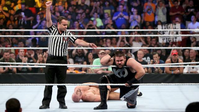 Cesaro sits Owens on the top turnbuckle but KO fights him off so Cesaro hits another uppercut. Cesaro goes for a superplex but Owens tries to counter. Instead Cesaro lands on his feet and hits a standing dropkick to Owens!