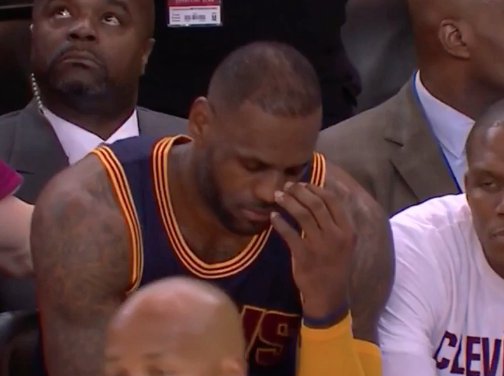 At the end of the 3rd quarter LeBron took a seat on the Cavs bench and Golden State’s reserves went on a 27-4 run that eventually put the game out of reach. During that run LeBron had a hard time hiding his feelings.