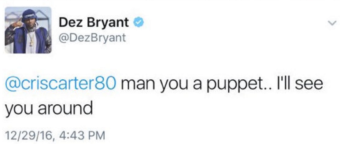 Dez at times cares too much about what people in media says about him and that is when you get the tweets where it seems he is threatening Cris Carter.
