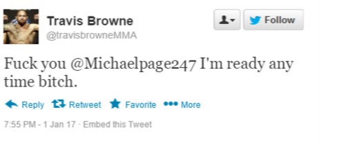 Ronda Rousey’s boyfriend Travis Browne who left his wife for her and has been accused of domestic violence against his Ex-Wife took offense and threatened Page.