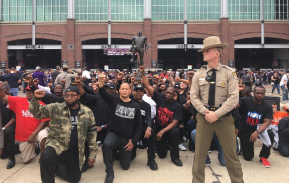 TAKE ASTAND for liberty, justice & equality@jamalhbryant on Pscope Black men taking a knee..Baltimore Ravens Stadium https://t.co/Z9K6i7VIUD
