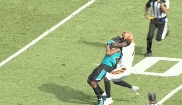 Twitter Reacts to AJ Green Putting Jalen Ramsey in Rear Naked Choke Hold (Video) by BSO Staff November 5, 2017 Facebook X Linkedin Whatsapp Bluesky Threads Reddit AJ Green has just had enough of the Bengals act. At the end of the first half of their matchup with the Jacksonville Jaguars, Green got into a fight with Jalen Ramsey, causing both players being ejected. Flip The Page to see video and reaction: Pages: 1 2 3 4 5 6 7 8 1 2345 ... 8Next » Next » BSO Staff Latest posts Joe’s Highs and Lows: Monday Night RAW 6-24-24 Joe’s Highs and Lows: Smackdown 6/22/24 NBA Enters Multiyear Sponsorship Agreement with Kim Kardashian’s Skims—Details Behind the Deal After PlayBoy Fires Mia Khalifa, Ryan Garcia Opens Up On Israel Attack- “This Is Straight…” View all Tags: BengalsJaguarsJalen Ramsey Follow us on Facebook Most Popular 1 Is The Chiefs Dynasty Over? Patrick Mahomes Tears ACL 2 The Severity of Patrick Mahomes’ Knee Injury Revealed 3 Shedeur Sanders Wears Wrong QB Wristband Against Bears 4 Philip Rivers Named Colts Starter: Is It Safe for the 44-Year-Old to Play? BSO Shop 10% Discount Sale Previous Story Vin Scully on Never Watching Another NFL Game Because Players Are Kneeling Against Racism & Police Brutality (Video) Next Story Video of Lamar Odom Collapsing at LA Nightclub
