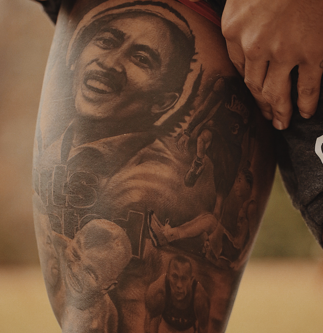 Here’s a list of sports/cultual icons featured in the tattoo: