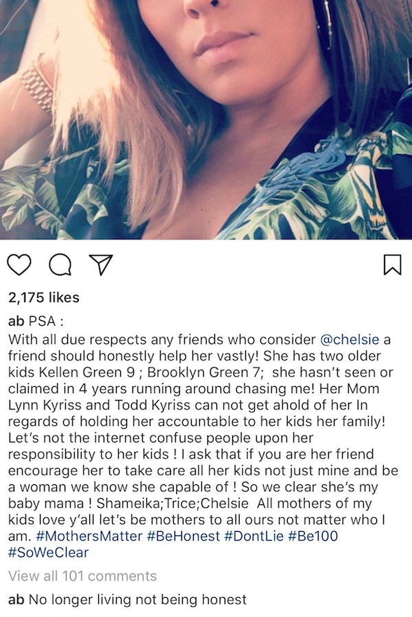 Randomly, he went on IG to say that Chelsie hasn’t been taking care of her other two kids that she doesn’t have with him.