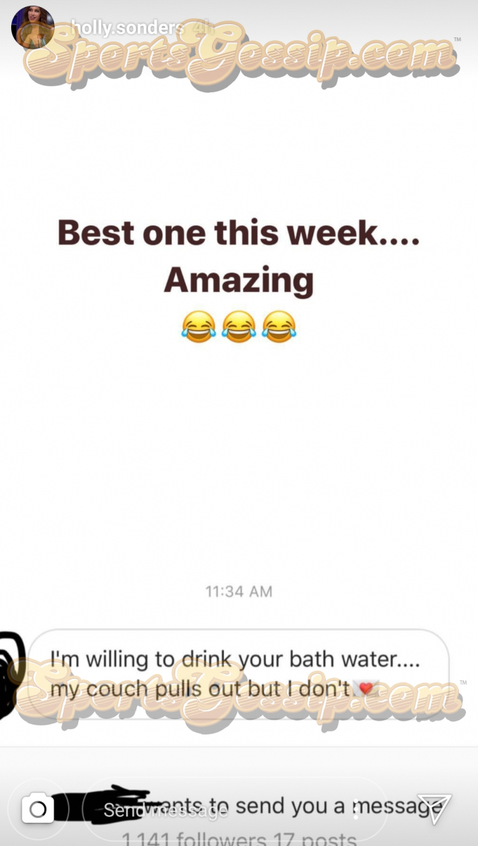 Kliff Kingsbury’s Girlfriend Fox Sports Reporter Holly Sonders Shows Off The DMs She Gets Daily Including One Asking for a Threesome With Her & Kingsbury (DMs-Pics-Vids) by Robert Littal April 4, 2019 Facebook X Linkedin Whatsapp Bluesky Threads Reddit Pages: 1 2 3 4 5 6 7 « Prev123 4 567Next » « PrevNext » Robert Littal Latest posts Robert Littal created BlackSportsOnline (BSO) to give fans an honest, unfiltered look at the world of sports and entertainment. Lakers Jaxon Hayes Suspended For Shoulder Blocking Wizards Mascot Dwyane Wade’s 23-Year-Old Son G-Leaguer Zaire Wade Ready Play College Basketball Why James Harden Was Traded to Cavs Arrest Warrant Issued For Gervonta “Tank” Davis in Baltimore View all Follow us on Facebook Most Popular 1 Sydney Sweeney Shows Off Her Goodies In Series Of SYRN Lingerie 2 Kayla Simmons Flaunts Massive Cleavage In Two-piece Bikini 3 Jordon Hudson Rages Against Hall of Fame for Bill Belichick’s Rejection 4 LeBron James Requests Courtside Kiss From Savannah James BSO Shop 10% Discount Sale Previous Story Social Media Reacts to Freaknik Returning to Atlanta But in a “Family Friendly” Way (Videos) Next Story How a Married Teacher Escaped Jail Time After Having Sex With 3 of Her Students While Her Husband Was at Work; Name That State (Video)