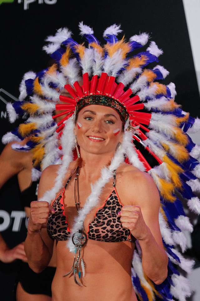 Brodnicka, who showed up to the weigh in wearing lingerie, was in a stare down with her opponent when she decided to randomly kiss her.
