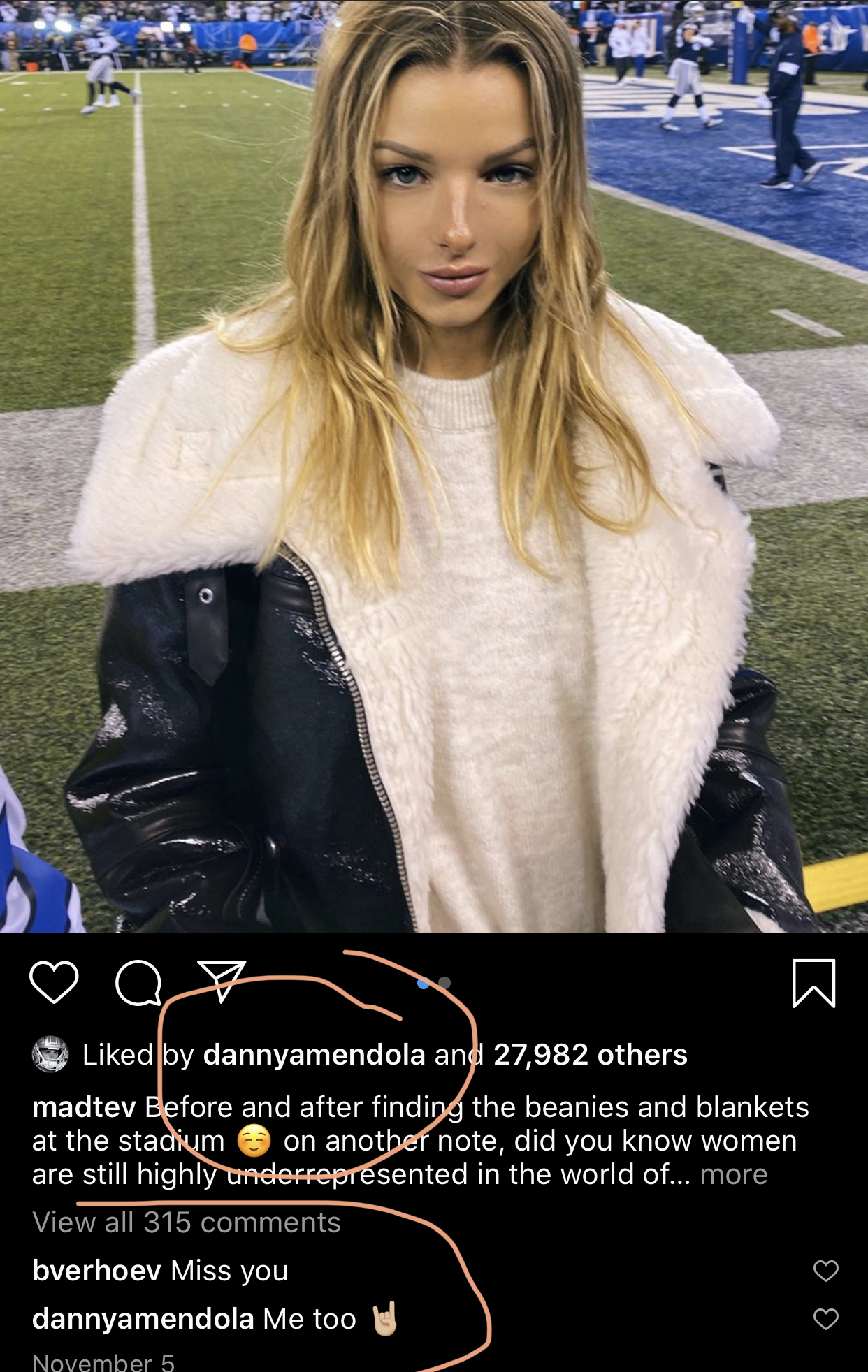 Madi Teeuws, who you might remember from the hit show ‘Deal or No Deal’ holding briefcase #15 is the latest woman to catch the attention of the Detroit Lions receiver. Under recent Instagram posts Danny Amendola appears to shoot his shot ever so slightly by suggesting he misses Madi Teeuws received a comment from another user suggesting the same.