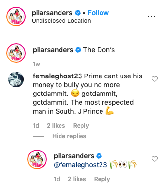 How Pilar Sanders and J. Prince Might Be Engaged After She Showed Off New Diamond Ring and IG Comment Shading Ex-Husband Deion Sanders (Photos-Vids) by BSO Staff November 8, 2019 Facebook X Linkedin Whatsapp Bluesky Threads Reddit Pages: 1 2 3 4 5 6 7 « Prev12345 6 7Next » « PrevNext » BSO Staff Latest posts Joe’s Highs and Lows: Monday Night RAW 6-24-24 Joe’s Highs and Lows: Smackdown 6/22/24 NBA Enters Multiyear Sponsorship Agreement with Kim Kardashian’s Skims—Details Behind the Deal After PlayBoy Fires Mia Khalifa, Ryan Garcia Opens Up On Israel Attack- “This Is Straight…” View all Tags: Deion SandersPilar Sanders Follow us on Facebook Most Popular 1 NFL Won’t Investigate Mike Vrabel For Vacationing With Dianna Russini 2 Dianna Russini Couldn’t Provide Evidence She Was on Girls Trip When She Met Mike Vrabel 3 Garret Anderson, a Former MLB Star, Dies at Age 53 4 Wings Decline Reporter’s Question To Azzi Fudd About Relationship With Paige Bueckers BSO Shop 10% Discount Sale Previous Story How Warriors Guard Ky Bowman Qualifies For Low Income Housing In San Francisco (Video) Next Story Luka Doncic’s Girlfriend Anamaria Goltes Was In Attendance for the Mavs Win Over the Magic (Pics-Vid)