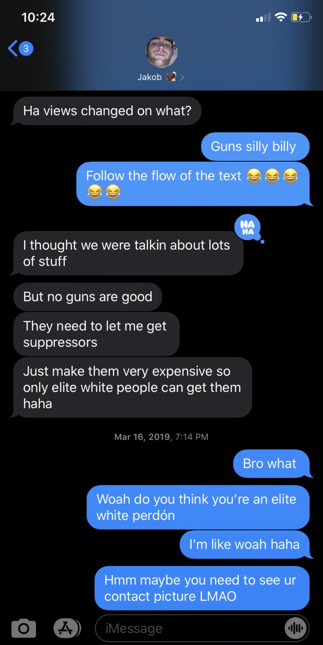 While speaking with a friend @ashleymp20 he joked that only “Elite White People” should only have access to guns.