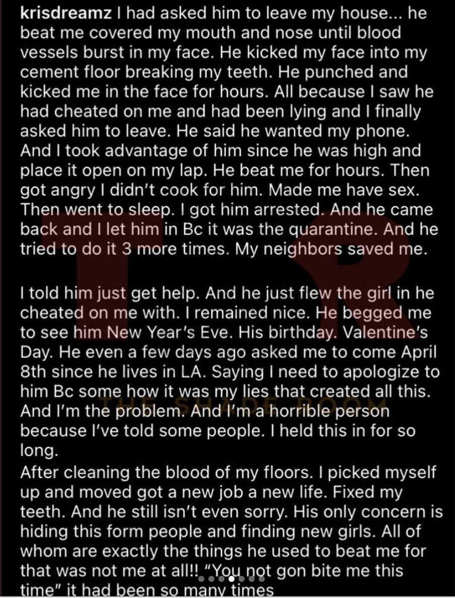 Ex-Lakers Darius Morris Apologizes For Beating Up His Ex-Girlfriend Kristen Evangaline by Robert Littal April 19, 2021 Facebook X Linkedin Whatsapp Bluesky Threads Reddit Pages: 1 2 3 4 5 « Prev123 4 5Next » « PrevNext » Robert Littal Latest posts Robert Littal created BlackSportsOnline (BSO) to give fans an honest, unfiltered look at the world of sports and entertainment. Playboy Says Klay Thompson “Fumbled” Megan Thee Stallion Klay Thompson Removes Final Video of Him and Megan Thee Stallion From His Social Media What are Some of the Best Sports Films? Mike Vrabel is Sad His Affair With Dianna Russini Forced Her to Quit Her Job View all Tags: Headline Follow us on Facebook Most Popular 1 Mike Vrabel Gets Harassed At Airport About the Dianna Russini Scandal 2 Ex-Nebraska Assistant Coach Chuck Love Admits Relationship With Ex-player Ashley Scoggin 3 Cam’ron Unbothered About Backlash For Speaking On Klay Thompson And Megan Thee Stallion Breakup 4 Paul Pierce Says Klay Thompson ‘Used’ Megan Thee Stallion To Get Through The Season BSO Shop 10% Discount Sale Previous Story Chinese Kitty Says Cowboys Trevon Diggs Assaulted Her and Threatened Her With Guns Next Story Terry Crews Says His Porn Addiction Came From a “Lack of Information” Not His Love of PAWGs