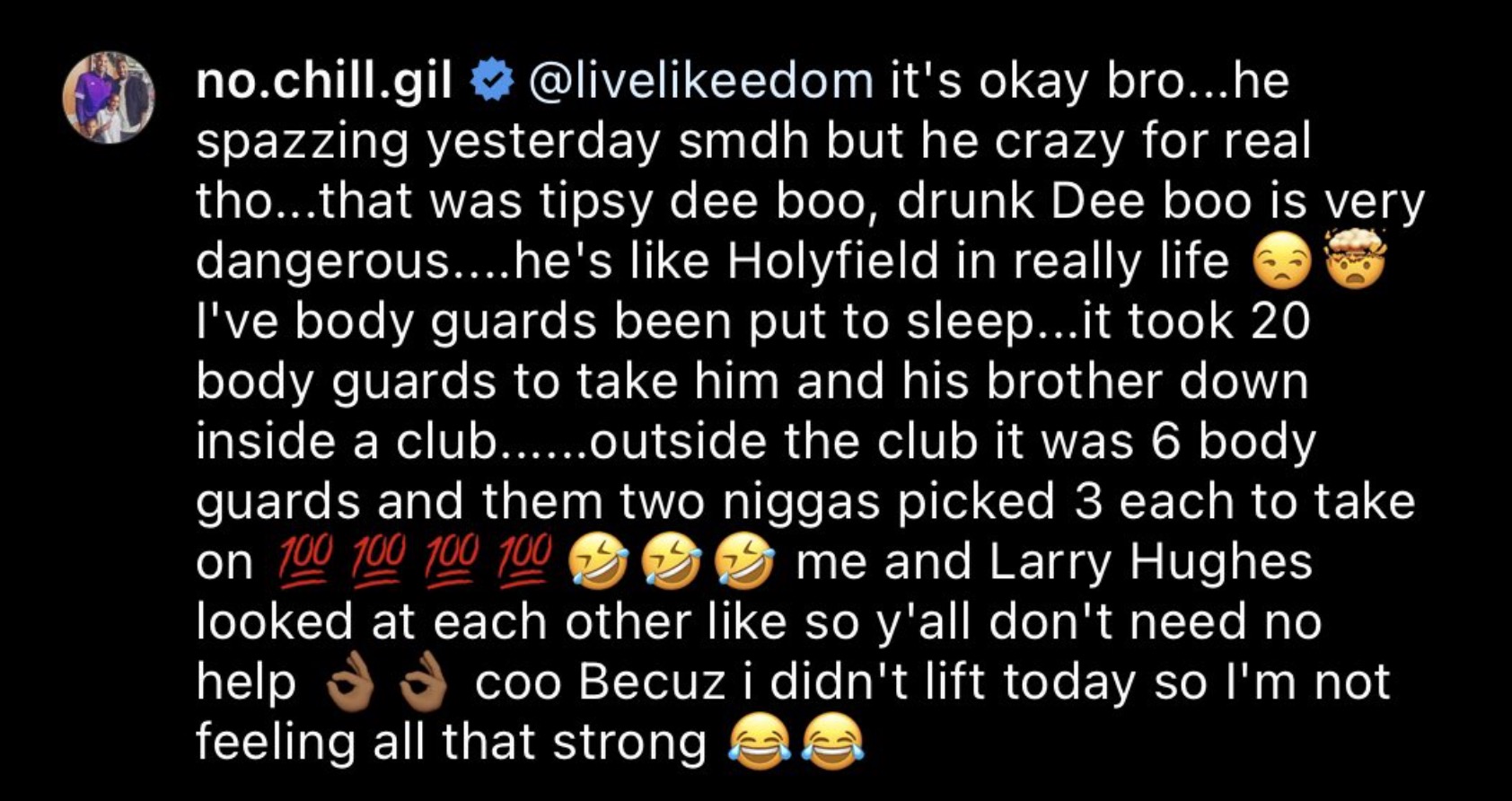 Gilbert Arenas Goes on Kwame Brown’s Live Stream to Say He Doesn’t Want The Smoke After He Saw Kwame Break a Bouncer’s Jaw by Robert Littal May 18, 2021 Facebook X Linkedin Whatsapp Bluesky Threads Reddit Pages: 1 2 3 4 5 6 « Prev12 3 456Next » « PrevNext » Robert Littal Latest posts Robert Littal created BlackSportsOnline (BSO) to give fans an honest, unfiltered look at the world of sports and entertainment. Paige Shiver Was Pregnant With Sherrone Moore’s Baby Watch Mike Vrabel and Dianna Russini Talk About His Wife Jen Mike Vrabel and Dianna Russini Spotted at Casino Looking Cozy Travis Hunter’s Wife Leanna Lenee Rules For WAGS at NFL Draft View all Tags: Headline Follow us on Facebook Most Popular 1 Paige Shiver Was Pregnant With Sherrone Moore’s Baby 2 Watch Mike Vrabel and Dianna Russini Talk About His Wife Jen 3 Mike Vrabel and Dianna Russini Spotted at Casino Looking Cozy 4 Travis Hunter’s Wife Leanna Lenee Rules For WAGS at NFL Draft BSO Shop 10% Discount Sale Previous Story Mulatto Goes By “Latto” After Changing Rap Name With New Self-Entitled Album Next Story Jalen Ramsey Calls Out Bears Fans for Constantly Reminding Him About Darnell Mooney Burning Him Last Season (Video-Instagram)
