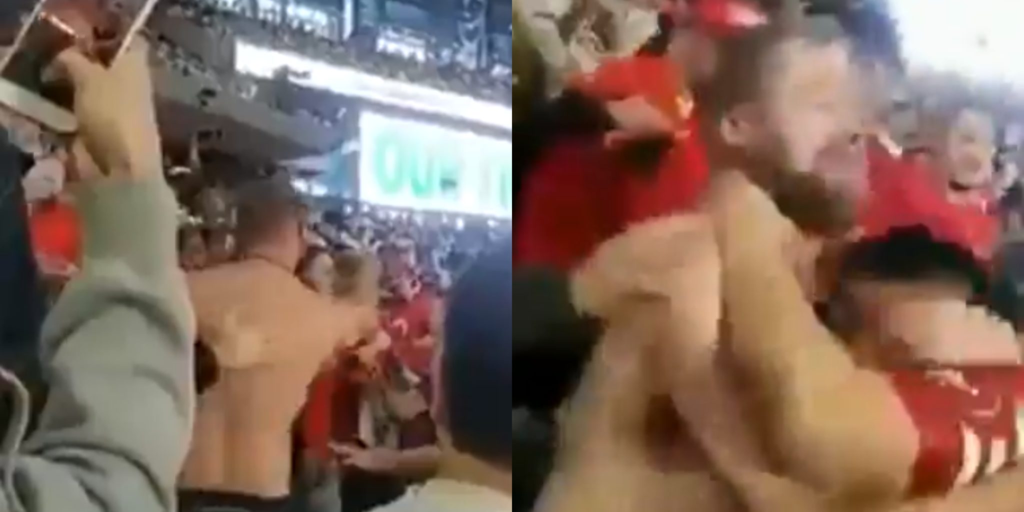 Footage from inside AT&T Stadium showed one fan removing his shirt and ready to fight a section of 49ers fans. Since he wanted action, he got it when several 49ers fans came up and jumped him.