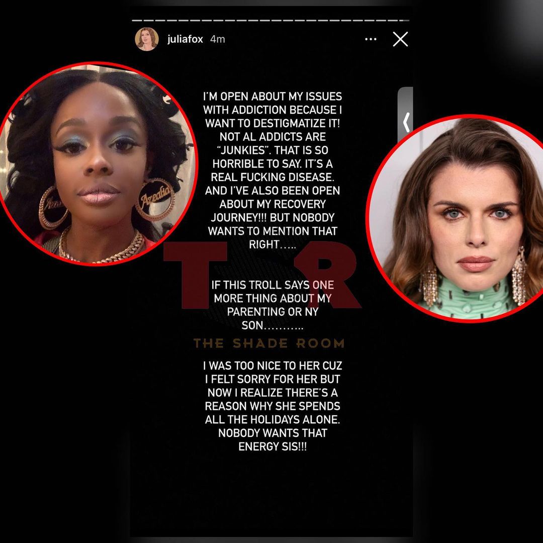 Julia Fox On Azealia Banks Calling Her a ‘Low Rate Escort’ And ‘Junkie’ Following Split With Kanye West by Samuel Clement February 18, 2022 Facebook X Linkedin Whatsapp Bluesky Threads Reddit Pages: 1 2 3 4 5 « Prev12 3 45Next » « PrevNext » Samuel Clement Latest posts Samuel is the Sr. entertainment reporter for BSO and deputy editor Simone Biles Reveals Breast Enhancement Surgery Is Painful After Going Under The Knife Patrick Beverley ‘Kicked Off’ Barstool After Allegedly Choking And Punching His Sister In The Eye Watch Miss Jamaica Gabrielle Henry Fall Off Stage During Miss Universe Contest Lavar Ball Says He Danced To LiAngelo’s ‘Tweaker’ Song Knowing It Was Going To Hit View all Tags: Azealia BanksJulia FoxKanye WestKim KardashianNorth West Follow us on Facebook Most Popular 1 Olivia Dunne Has Buns Out in Hawaii With Paul Skenes 2 Lions Jahmyr Gibbs Loves His Half Korean Half Swedish Girlfriend Nicole Anderson’s Face Card 3 50 Cent’s Baby Mama and Diddy’s Freakoff Partner Daphne Joy Drops New Mirror Selfies 4 SteveWillDoIt Claims Lakers Austin Reaves Tried to Sleep With His Girlfriend Celina Smith BSO Shop 10% Discount Sale Previous Story Biils Stefon Diggs Had Two Women in Same Hotel in Different Rooms on Valentine’s Day Next Story Wack 100 Says Chrisean Rock Stole Blueface’s SUV to Go Sell Crack