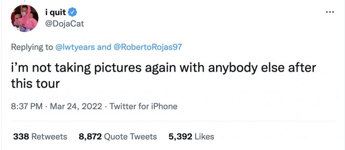 Doja Cat Apologizes For Announcing She’s Quitting Music Amid Backlashes From Paraguayan Fans by Samuel Clement March 28, 2022 Facebook X Linkedin Whatsapp Bluesky Threads Reddit Pages: 1 2 3 4 5 6 7 « Prev12 3 4567Next » « PrevNext » Samuel Clement Latest posts Samuel is the Sr. entertainment reporter for BSO and deputy editor Meet Flau’Jae Johnson, The Basketball Player Who Kick Against Proposed Charlie Kirk Statue At LSU Charles Barkley Says LeBron James Is Faking His Injury Sydney Sweeney Storms Red Carpet Of Variety’s “Power of Women” In Transparent Dress Megan Thee Stallion Reportedly Moves In With New Boyfriend Klay Thompson View all Tags: Doja Cat Follow us on Facebook Most Popular 1 Ex-WNBA Kysre Gondrezick to Pose For Playboy 2 25 Unreleased Kim Kardashian Playboy Pictures.. 3 Sophie Cunningham Wants To Make Her Victoria’s Secret Runway After Angel Reese Did it First 4 YesJulz on If She Has Ever Slept With LeBron James 5 NBA 2010 Kickoff: Stop Talking Nonsense BSO Shop 10% Discount Sale Previous Story Kim Kardashian Shows Off Pete Davidson’s “My Girl is a Lawyer” Chest Tattoo He Got in Her Honor Next Story 50 Cent Mocks Both Will Smith and Chris Rock Over The Slap; Says He Has Plans to Slap Someone When He Wins OSCAR