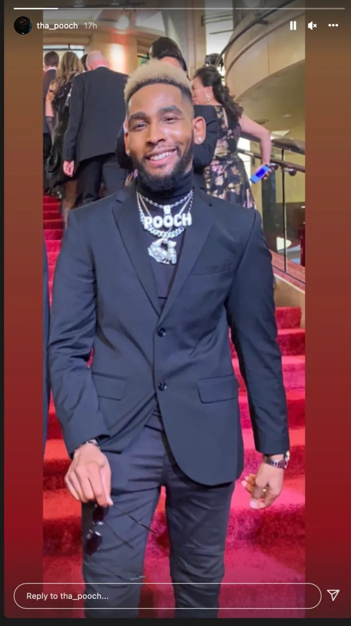 Pooch actually attended the Oscars with Tiffany. Here’s a pic of the young man wearing a tuxedo and walking up the stairs of the Oscars.
