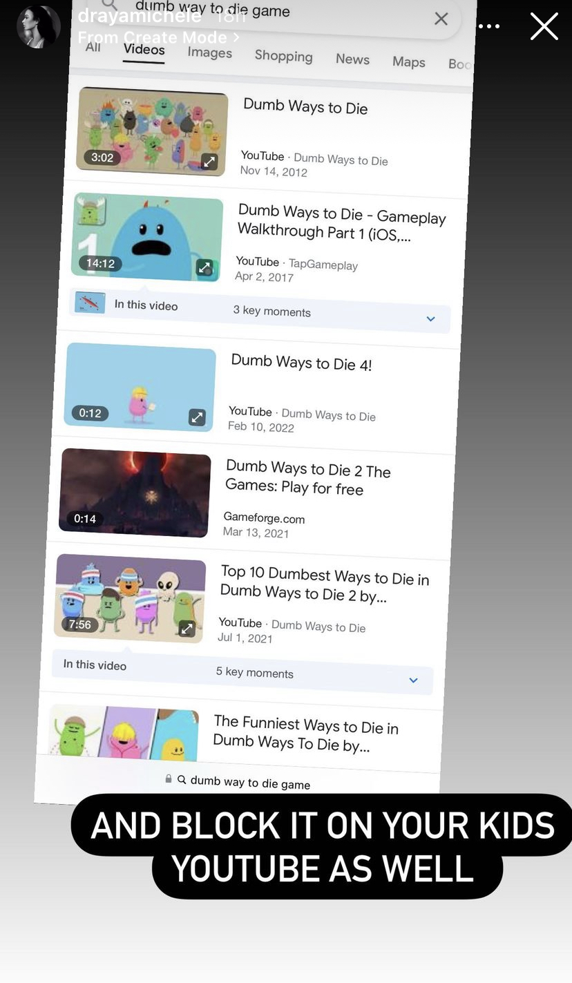 Draya Michele, 37, took to Instagram on Monday (April 11) to warn fellow parents against a children’s game called “Dumb Ways To Die” that is available for download in application stores. Draya Michele shared multiple posts via her IG stories calling out the questionable game that’s “disguised as educational” but really isn’t. In her first post, Draya wrote,