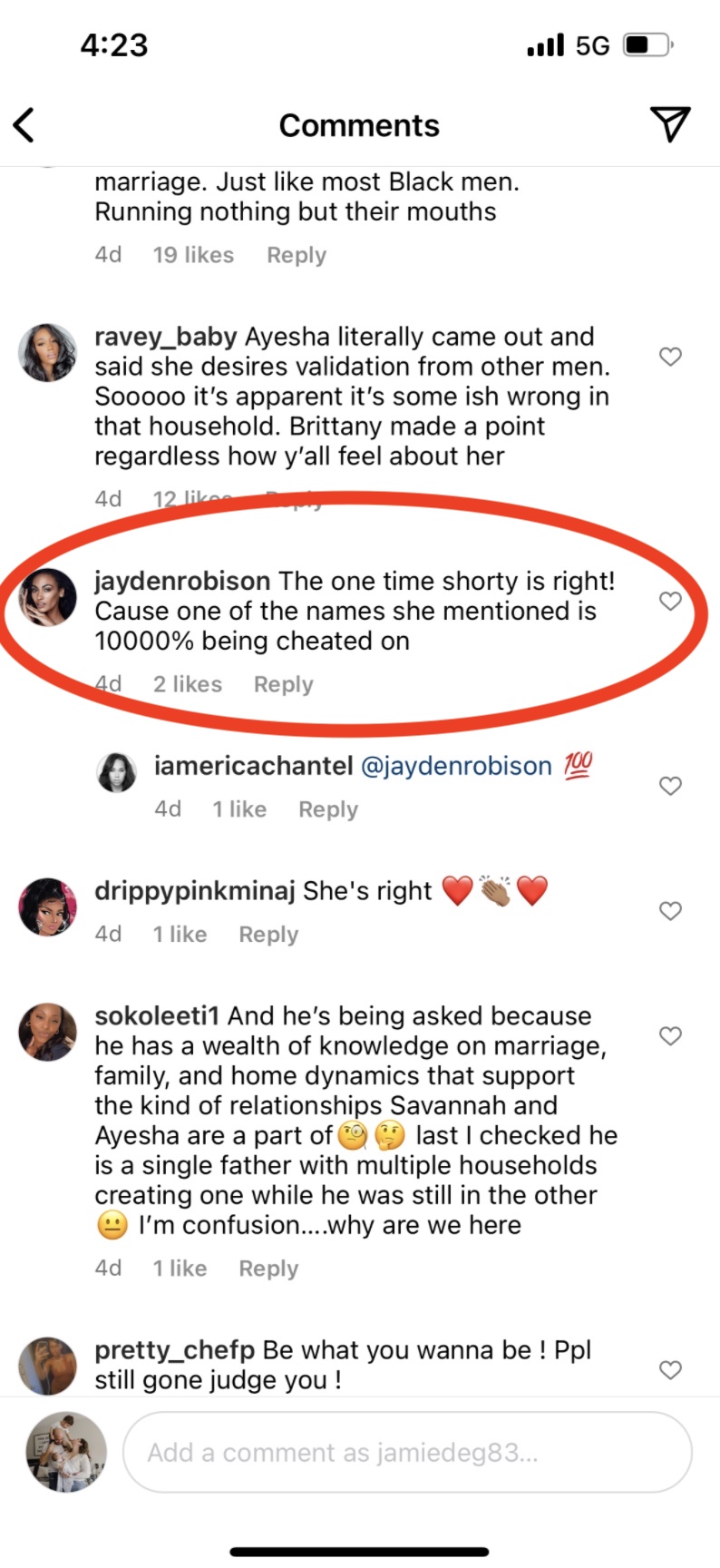 One IG Model by the name of Jayden Robinson went so far as to claim that one of LeBron James or Steph Curry is “10000%” cheating on their wife, which is a pretty damning accusation from someone with nearly 65k followers.