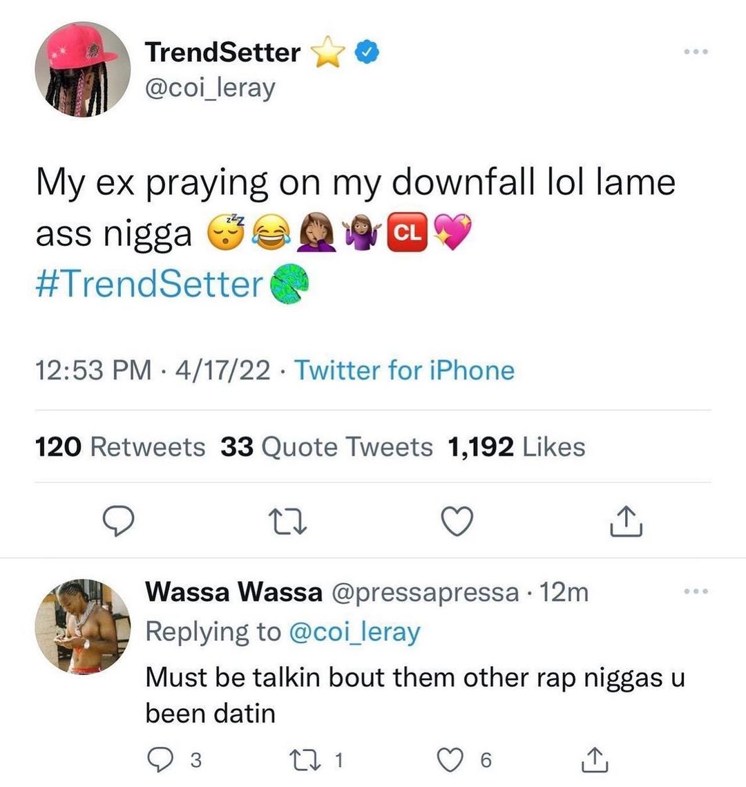 Pressa Responds To Coi Leray For Saying He’s Praying For Her Downfall by Samuel Clement April 19, 2022 Facebook X Linkedin Whatsapp Bluesky Threads Reddit Pages: 1 2 3 4 « Prev1 2 34Next » « PrevNext » Samuel Clement Latest posts Samuel is the Sr. entertainment reporter for BSO and deputy editor LeBron James Won’t Join The Lakers On Their 5-game Trip Grizzlies Could Trade Ja Morant To The Sacramento Kings Hailee Steinfeld Is Ready To Have Kids With Bills QB Josh Allen Video of UPS Plane Crashing At Louisville’s Muhammad Ali International Airport View all Follow us on Facebook Most Popular 1 Hot Flight Attendant Nicole Denison Arrested For Attacking Her Cheating Husband With Guitar 2 Pelicans Dejounte Murray Upset His Baby Mama Jania Meshell Won’t Stay Out of The Streets 3 Sportsnet Caleb Joseph Says The Dodgers Didn’t Deserve To Win Another Championship 4 NFL 101 All-Access at the LA Coliseum BSO Shop 10% Discount Sale Previous Story DaniLeigh’s Brother Brandon Bills Isn’t Cooperating With Investigators Following His Fight With DaBaby Next Story R&B Singer Monica Arnold Is Planning On Marrying Rapper C-Murder Who’s Serving a Life Sentence