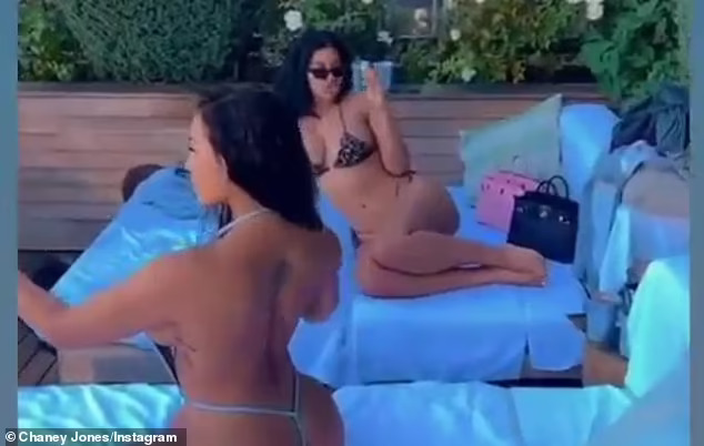 Kanye West’s flame aka Kim Kardashian clone Chaney Jones has released thirst traps rocking monokini while hanging out at the pool with her friends after she denied that she and Kanye have ended their relationship.