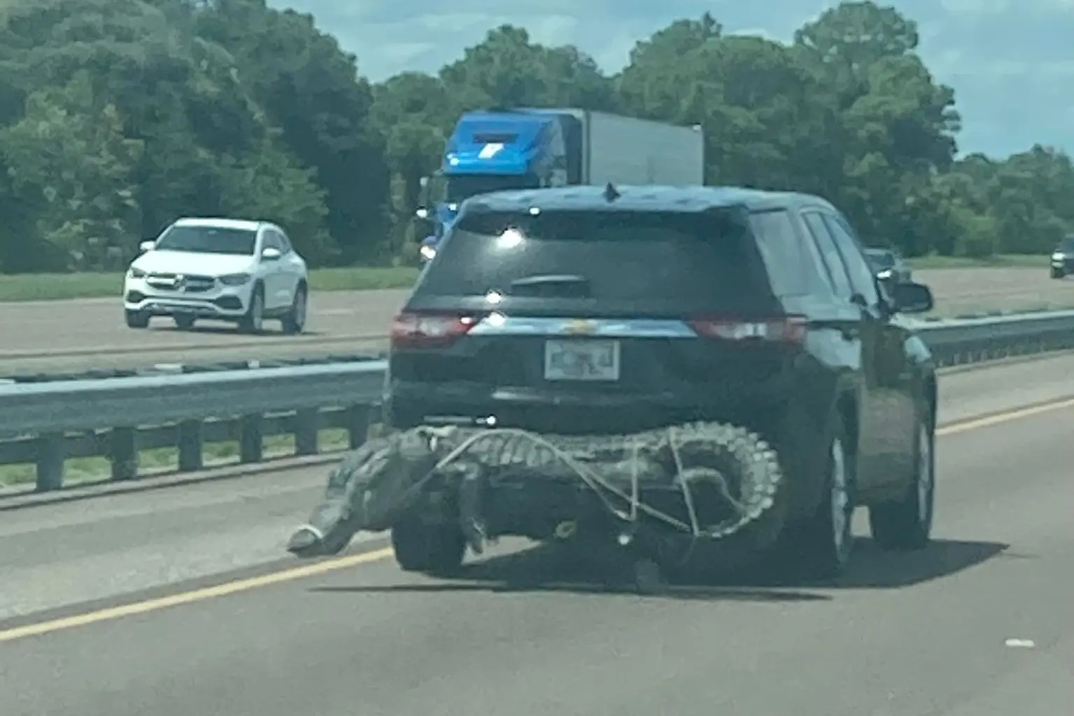 A startled Sunshine State driver spotted what appeared to be a large dead alligator tied to the back of a Jeep SUV this weekend south of Melbourne.